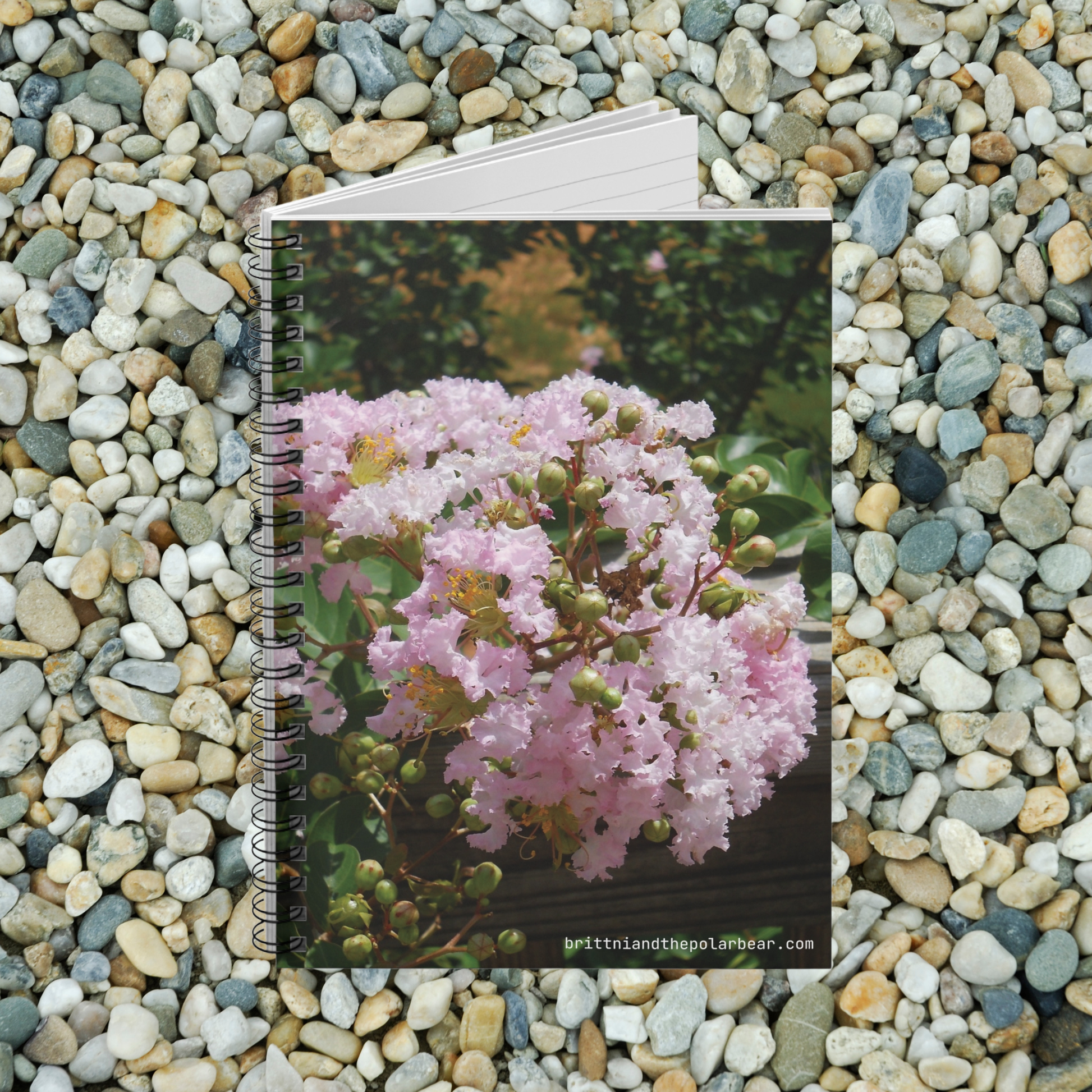 Shopping lists, to-do lists, notes, or poems - this 118 page spiral notebook with rule lined paper is a perfect companion in everyday life. Featuring a stunning photograph of soft pink flowers in full bloom, the cover art for this notebook is an original, unedited photograph taken by code artist and photographer, azurepolarbear. This elegant floral notebook showcases a perfect summer moment with clusters of delicate ruffled petals accompanied by glossy green foliage and rounded buds. With a durable printed cover, artists, creatives, and students will be proud to carry it everywhere. It makes a great companion for personal reflection, brainstorming sessions, or maintaining an organized life. Whether it's for back-to-school season, a birthday gift, or a thoughtful gesture during the holidays, this notebook is a delightful addition to any stationery collection.