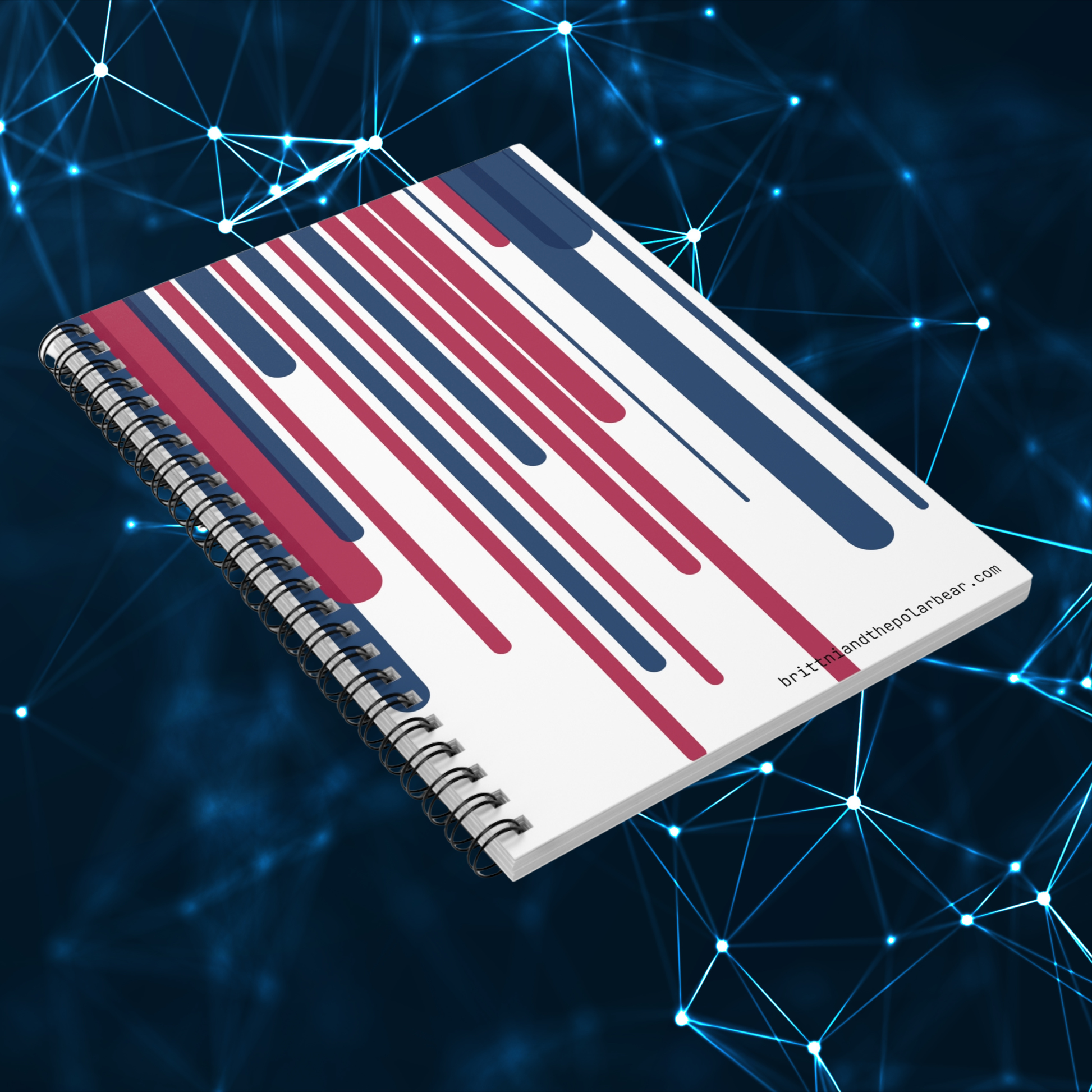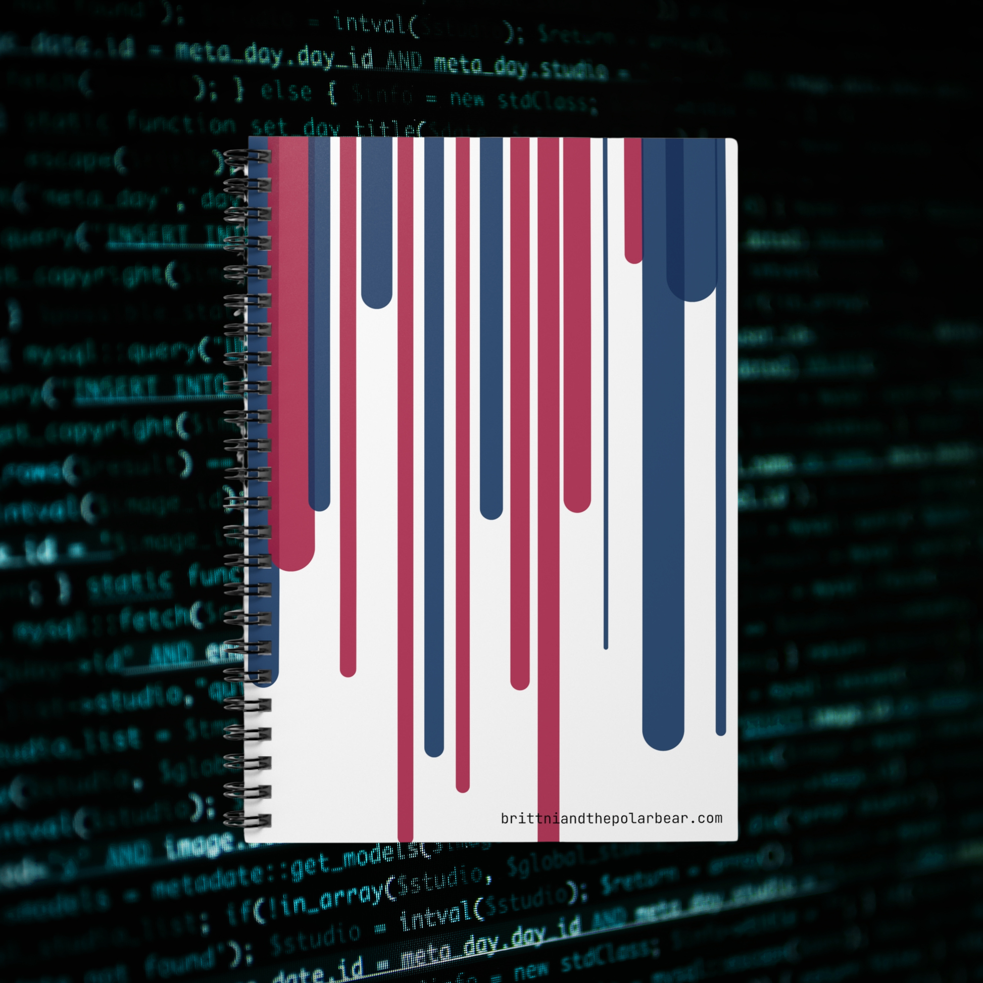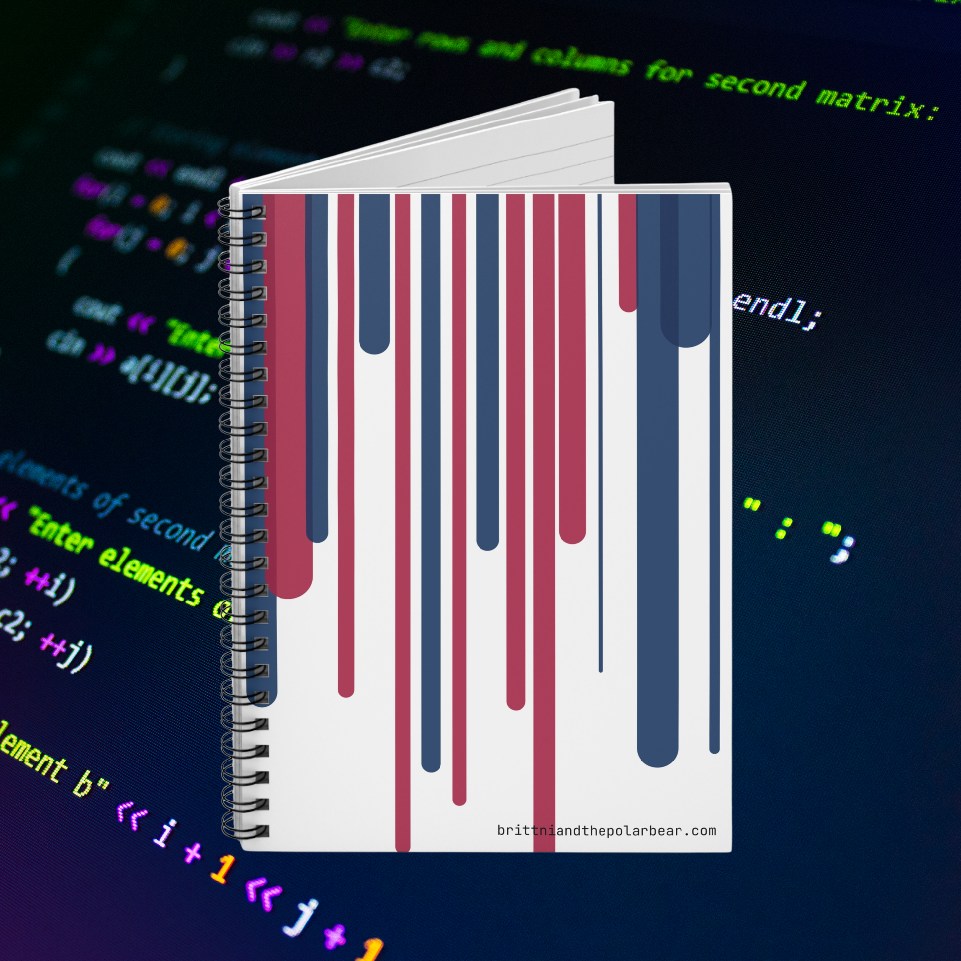 This 118-page spiral notebook transforms everyday note-taking into a work of art. Featuring original algorithmic design by code artist and software engineer azurepolarbear, the cover reimagines patriotic red, white, and blue through the lens of generative design, created entirely with TypeScript code.